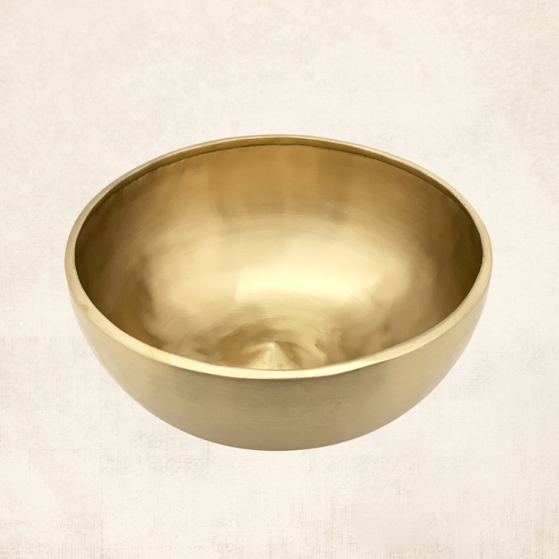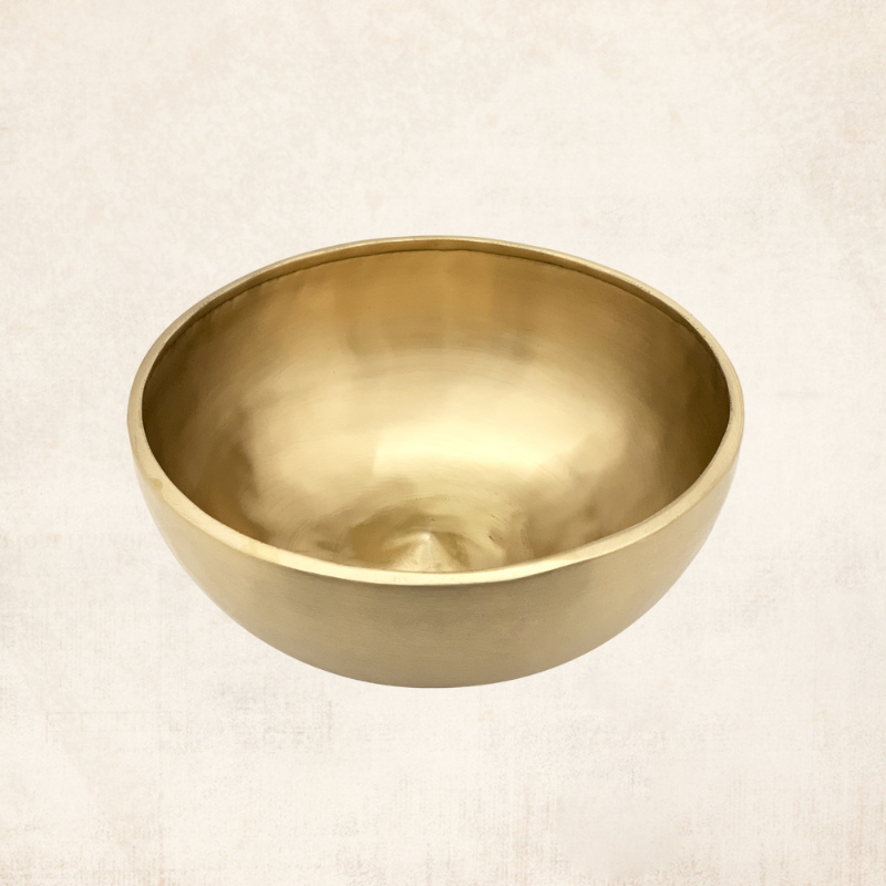 This type of singing bowl is referred to as a "Lingam Singing Bowl," distinguished by its central inner embossed part. Crafted in a traditional manner, this particular bowl is both thick and smooth. When played, it produces a beautiful and melodic deep sound, making it an ideal accompaniment for meditation. Moreover, this bowl holds significance in ritual and ceremonial practices.
