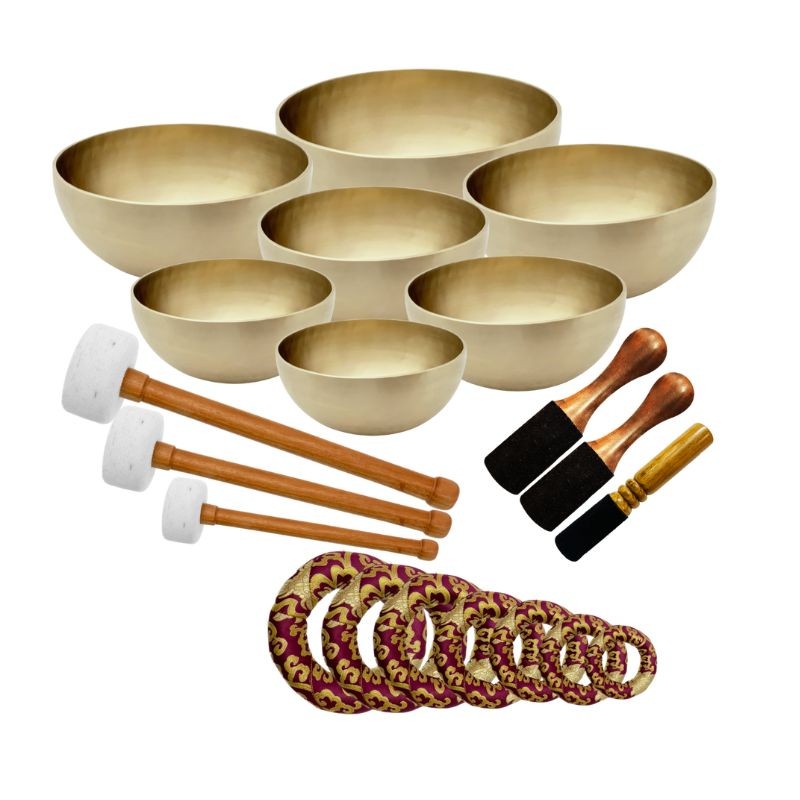 Cushions / Mat For each singing bowl Wooden mallet 3 pcs